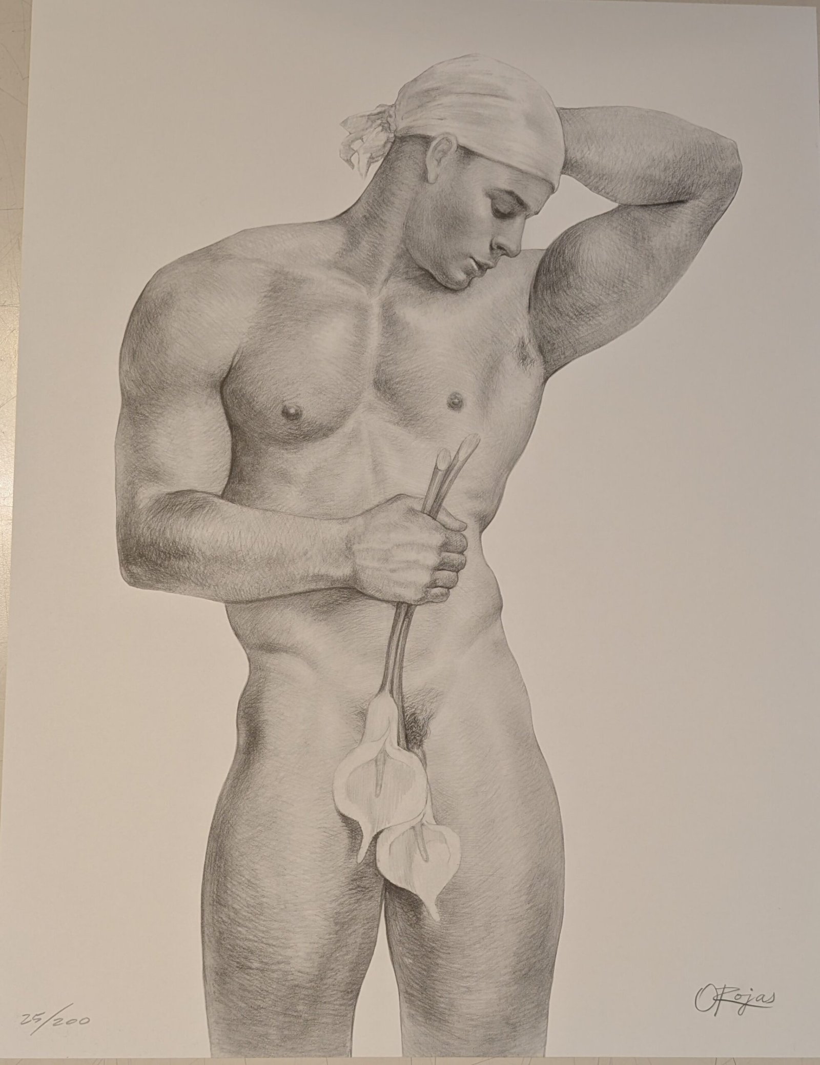 Signed and numbered black and white outset lithograph by artist Otto Rojas. Dimensions 17″ x 22 3/8″.
